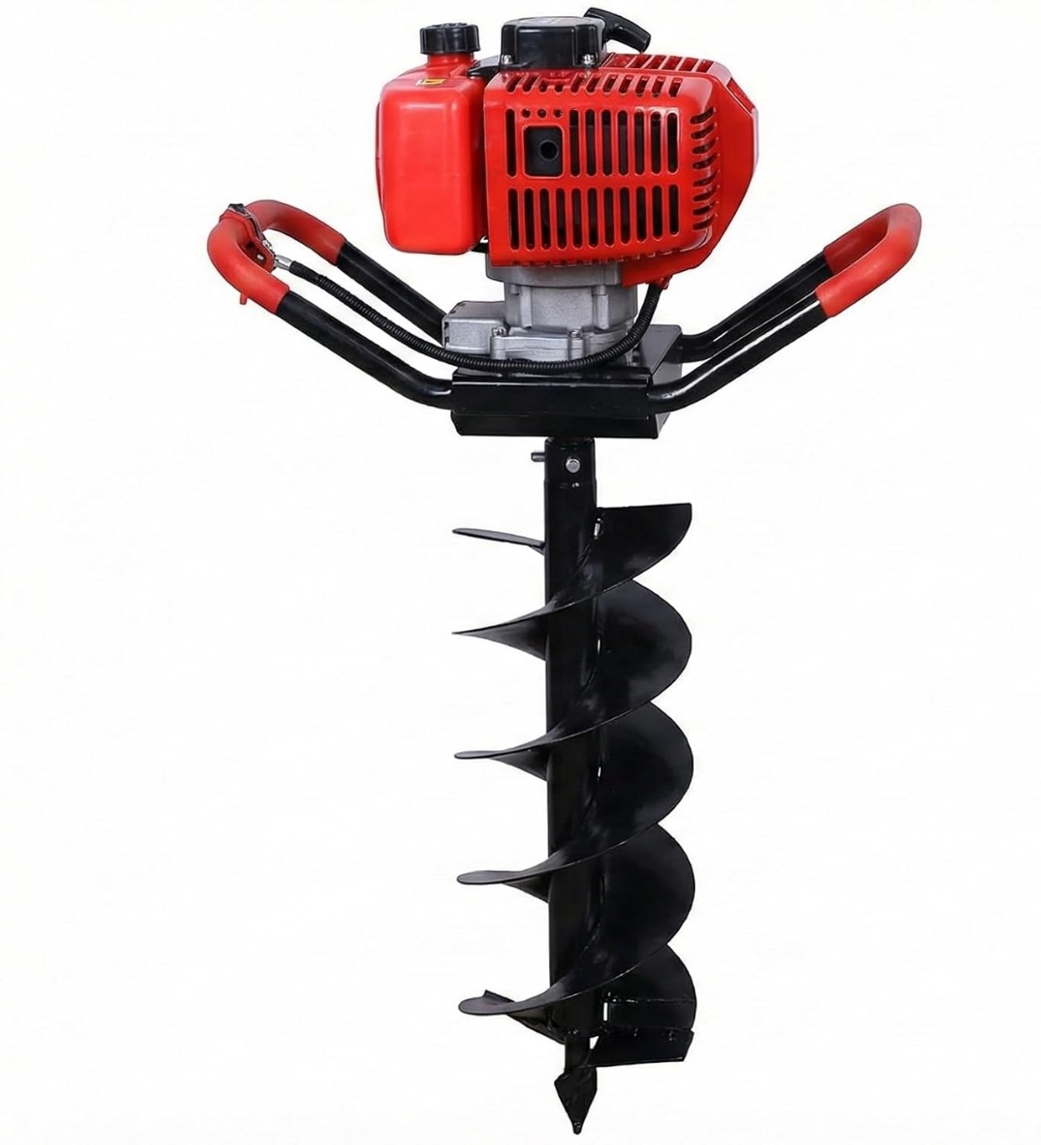 A drilling tool used to dig holes in the ground for tasks like planting, installing fence posts, or construction