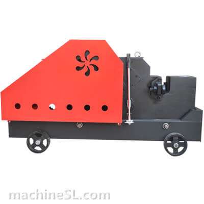 A specialized construction tool that precisely cuts steel reinforcement bars (rebars) to specific lengths